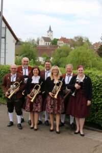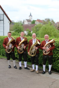 Dirigent: Daniel Weiß Flügelhorn (v. l. n. r.): Marco Bühler, Manfred Bühler, Annalena Stahl, Jochen Förnzler, Laura Rieger, Martin Gaukel, Svenja Apfelbach Klarinetten (v. l. n. r.): Kiara Bauser, Luisa Mall, Nico Vollmer, Lea Bauser, Tina Haldenwanger, Sabine Haldenwanger, Matthias Müller, Christl Plascha Tenorhorn/Bariton (v. l. n. r.): Thomas Dorsch, Tim Jochim, Joshua Vogel, Thomas Bühler. Nicht im Bild: Nico Bühler Trompeten (v. l. n. r.): Jochen Förnzler, Wolfgang Fischer Querflöten (v. l. n. r.): Larissa Lott, Lara Weigele Schlagzeug (v. l. n. r.): Rouven Bauser, Florian Restezki. Nicht im Bild: Nico Bühler Posaunen (v. l. n. r.): Georg Hirn, Tobias Haldenwanger, Steffen Mall Tuben (v. l. n. r.): Stefan Bauser, Pascal Hofmann. Nicht im Bild: Kurt Bühler Gesang (v. l. n. r.): Christl Plaschka, Wolfgang Fischer, Sabine Haldenwanger Tontechnik: Hartmut Reichert